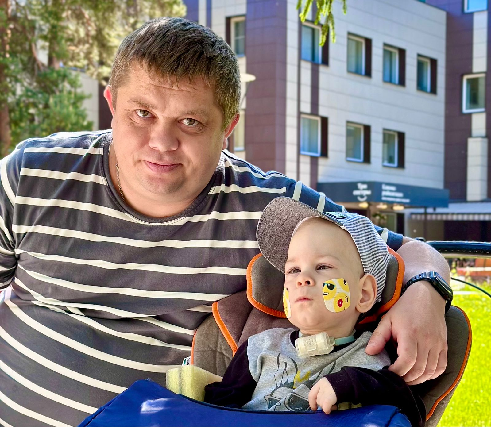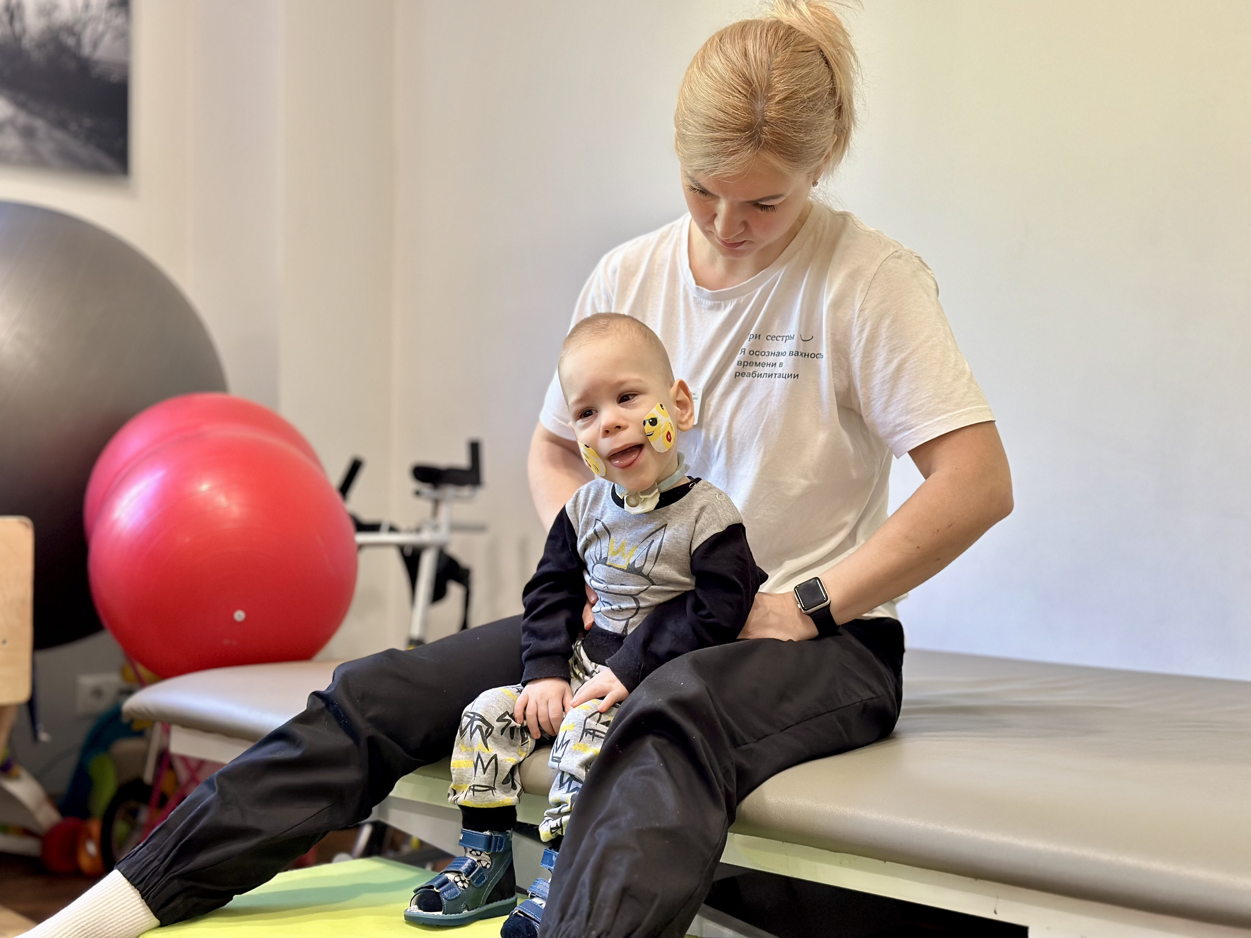 «Сын очень старается на занятиях, и я вижу как он изменился. У него появился искренний интерес к игрушкам: он с удовольствием крутит колёса у машинки, пробует играть на маленьком пианино. Вова заметно окреп и стал увереннее держать спину. Он уже учится садиться с моей помощью и может сидеть с опорой несколько минут. Для нас это огромный шаг вперёд! На занятиях с логопедом Вове закрывают трахеостому специальной заглушкой, чтобы он мог учиться говорить. Пока это только отдельные звуки, но я твёрдо верю, что однажды услышу самое долгожданное слово – «папа». Впереди ещё много работы, и заниматься нужно постоянно, но благодаря вашей поддержке мы с сыном обязательно справимся», – делится Николай, папа Вовы.